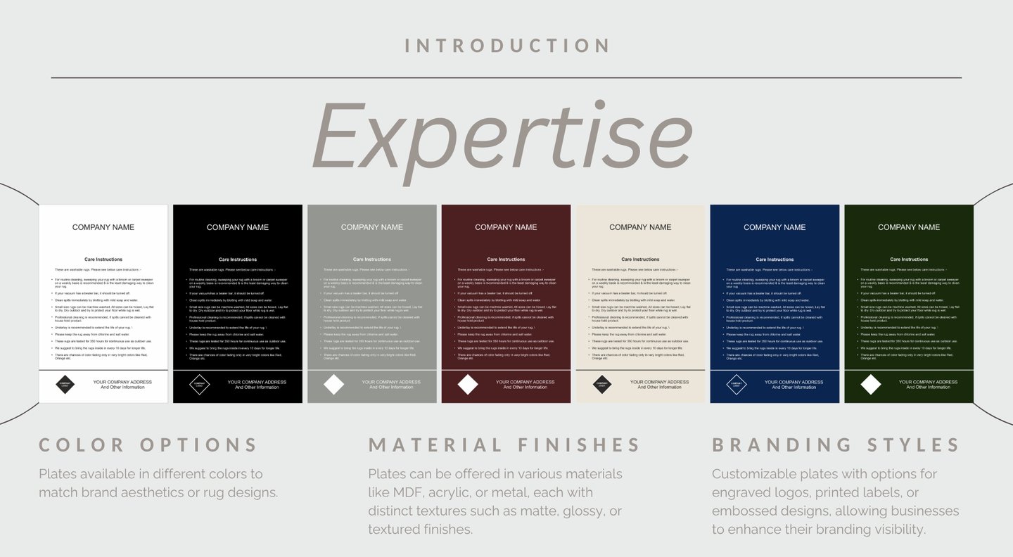 We design rug swatch plates with a clear purpose to simplify selection and enhance presentation.